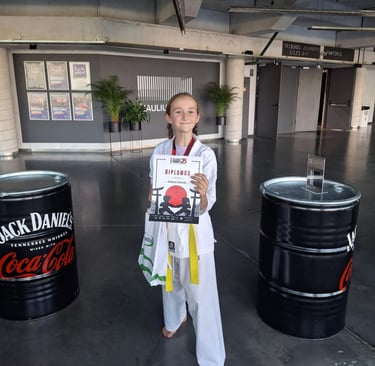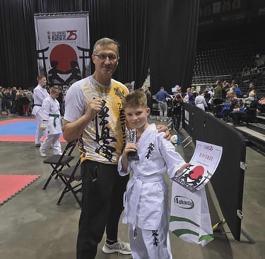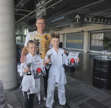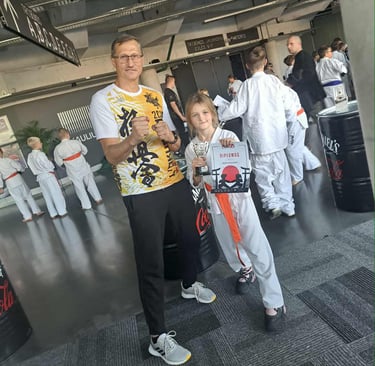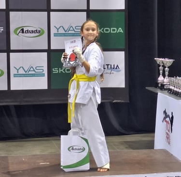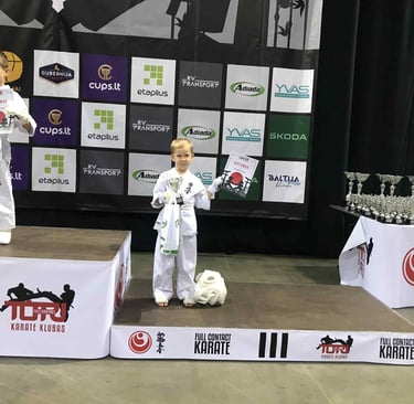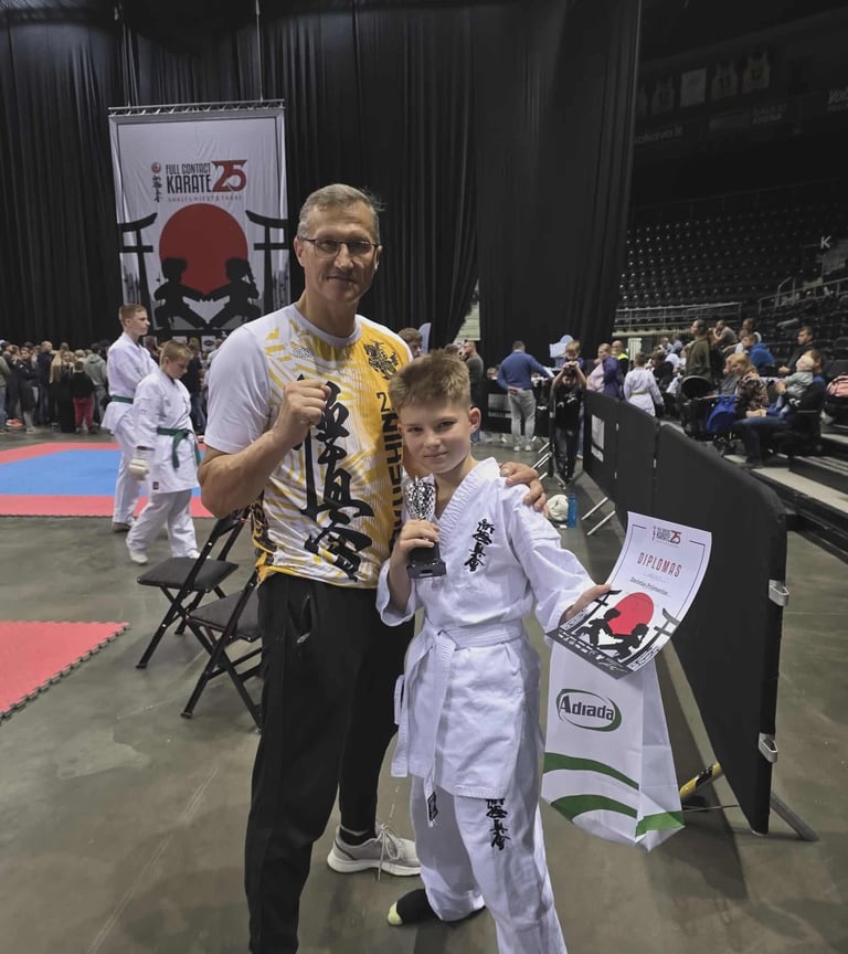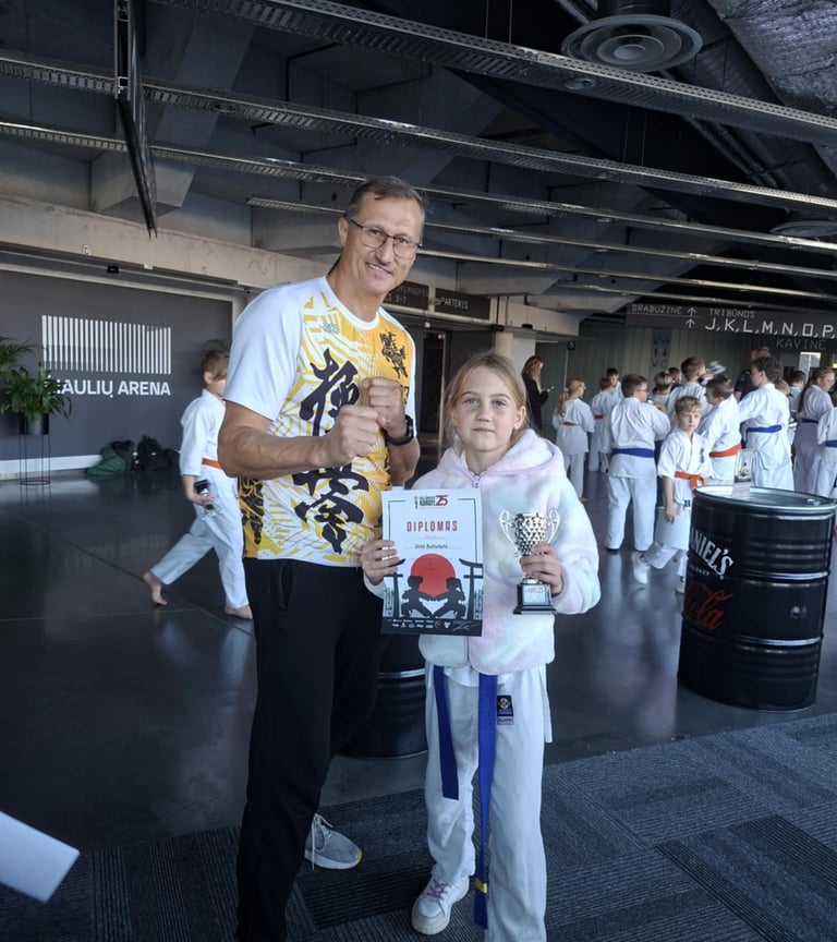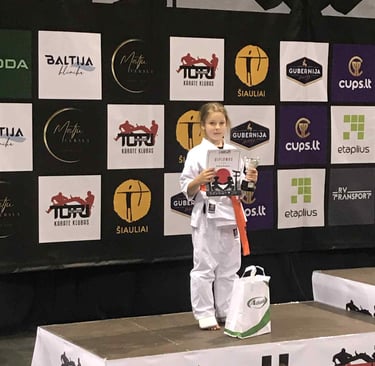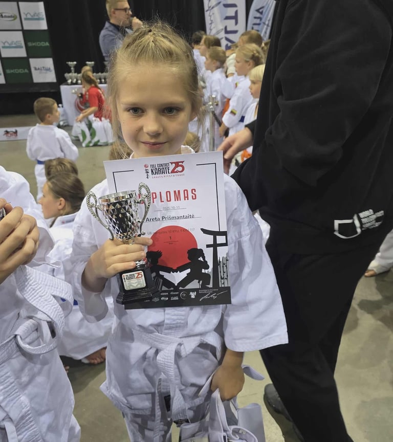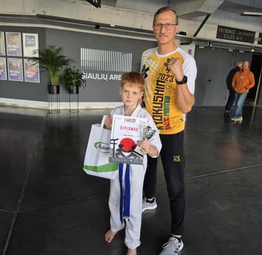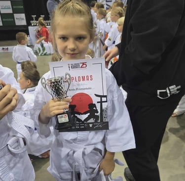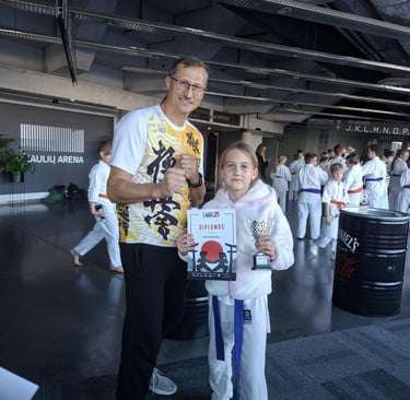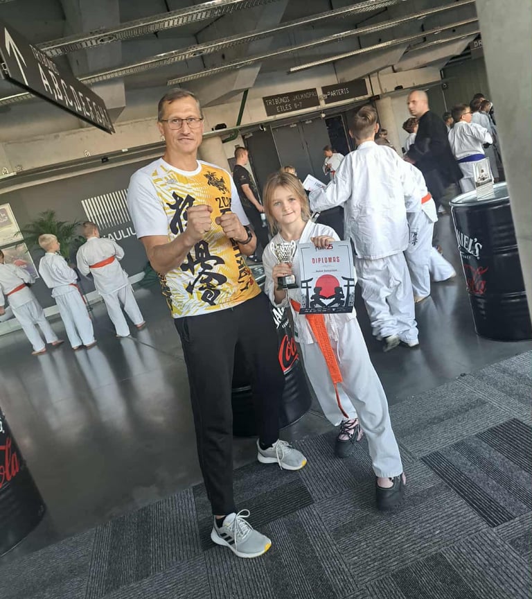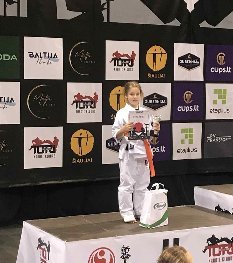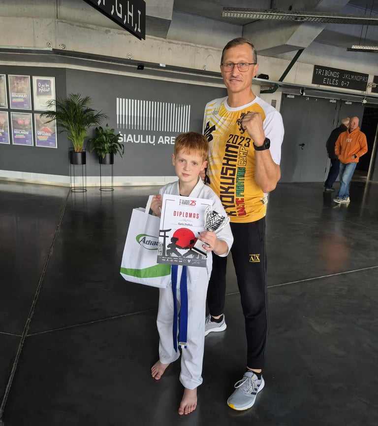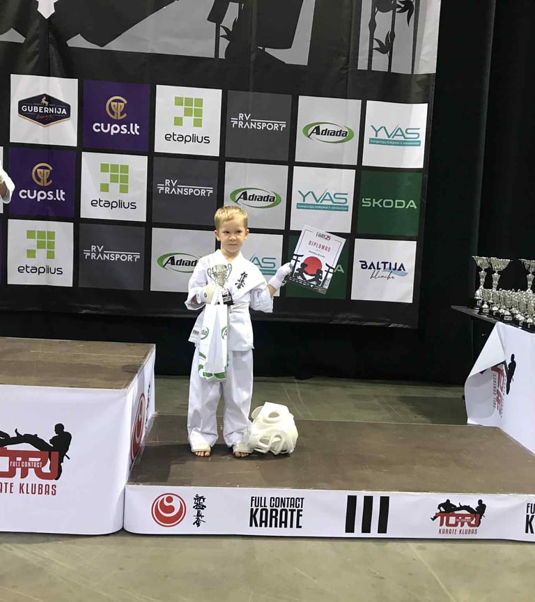 Danielius Bruožis – tai buvo pirmosios jo varžybos! Kova buvo apylygė, bet teisėjo sprendimas lėmė varžovo pergalę. Vis dėlto, tai tik Danieliaus karatisto kelio pradžia – pirmas žingsnis į dideles pergales!
